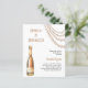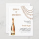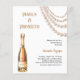 A modern, stylish and glamourous invitation for a Pearls and Prosecco Bridal Shower. A white background with a pearl necklace and a golden bottle of Prosecco. The name is written with a modern hand lettered style script. Personalise and add your party details.