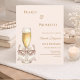 A modern, stylish and glamorous invitation for a Pearls and Prosecco birthday party (any age) An ivory blush colored background with a glass, flute with a bow with pearls. The name is written with a modern hand lettered style script. Personalize and add your party details.