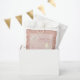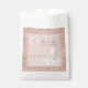 Elegant font and glamourous rose gold lace on a blush background complete this Pearls & Prosecco bridal shower favour bag. Add these to elevate your dessert table for grab-and-go treats, or place a filled treat bag at each place setting. Use the simple template to edit the text and be sure to check out the rest of EmmyINK’s Pearls & Prosecco collection for coordinating rose gold & blush stationary, baked goods, and décor!