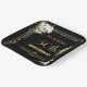 Personalise these vintage art deco floral Great Gatsby roaring 20s theme paper plates easily and quickly, simply press the customise it button to further re-arrange and format the style and placement of the text. Featuring a chic art deco frame, ivory white orchid and lily floral, sparkling pearls and black and gold colour scheme. Matching items available in store! (c) The Happy Cat Studio.
