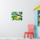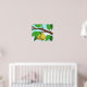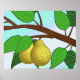 "Pears on a Branch" print with border - mixed media graphic design, digitally enhanced vector drawing of ripe pears on a branch with green leaves