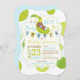 Bold green dots print background and bunting banner with African baby boy in pea pod modern baby shower invitation card design.