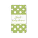 Green and white baby shower invitation featuring adorable illustrations by jw illustrations. Featuring a polka dot design with twin babies in a pea pod. Wrap these around mini candy bars for a cute & unique baby shower party favour!