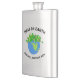 The product is a good size and came exactly as it was pictured. The lid is not attached to the flask, which could be dangerous on drunken nights... The print came out surprisingly well and looks very sharp. Would definitely recommend.
