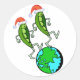 Funny Christmas stickers and Gifts these holiday peas on earth presents and products feature dancing split peas wearing santa hats atop the planet earth! From Lesruba Designs.