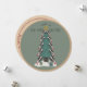 You don't often see a sight like this but once beheld you won't forget & neither will your family and friends when they open this thick, double-sided round Christmas Card featuring an original illustration of ten sweetly innocent Penguins, wearing their best Santa Claus Hats, lying about suspended like Bats, of the Christmas Tree! On the back, a whole flock of these silly birds complete the greeting on the front: "Have a very Merry Christmas and a Happy New Year!"