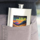 The product is a good size and came exactly as it was pictured. The lid is not attached to the flask, which could be dangerous on drunken nights... The print came out surprisingly well and looks very sharp. Would definitely recommend.