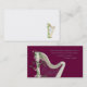 This business card features illustrations of a pedal harp with flowering roses climbing along its column. The back of the card has the illustration superimposed over a rich burgundy background and a quote from Thomas Carlyle. The front of the card features a smaller image of the full harp and leaves plenty of room for you to personalise your own design!