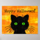 This curious black cat with huge green eyes is playing peek-a-boo on this poster. With his large eyes and long scraggly whiskers this cat makes for a more fun than scary Halloween. The perfect trick-or-treat décor! The watercolor texture of the orange and black gives this a hand painted look. Change the message to say "Trick-or-Treat" or personalize it to your suit your needs.