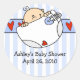 Cute Baby shower sticker features the cutest peeking baby Boy with a diaper and a blue & white striped background. Perfect sticker for baby favours or invitation envelope seals! Matching invitations, postage stamps & thank you notes are available in our shop at www.celebrateitinvites.com. ©jdsclipart