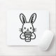 This simple black-and-white line art features a curious bunny holding a steaming cup of coffee. A clean and modern design for anyone who needs their caffeine fix and loves rabbits.