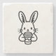 This simple black-and-white line art features a curious bunny holding a steaming cup of coffee. A clean and modern design for anyone who needs their caffeine fix and loves rabbits.