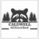 This personalised address mailbox sticker feels like the country with a racoon peeking above the name and address with evergreen trees on both sides.