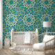 Peel and Stick Wallpaper Blue Graphic Circles Pattern. Renters homeowners interior designers can create a personalised look for any room.