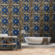 Peel and Stick Wallpaper Indian inspired design Rich Blue Gold Squares Wallpaper. Great easy diy project for renters homeowners interior designers. Create a personalised look for your home condo apartment office or business. Decorate walls celings furniture headboard kitchen backsplash doors or storage containers. The possibilities are endless. Available in textured and smooth vinyl. Sizes 2'x4' 2'x8' 2x10' and 2'x12'.