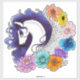 A stunning fantasy artwork of a white pegasus with flowing deep violet mane and elegant feathered wings, surrounded by a vibrant bouquet of colorful flowers. The mix of bold blooms in pink, orange, blue, teal, purple, and yellow creates a magical and uplifting design full of life and grace. Perfect for horse lovers, fantasy art fans, and anyone who enjoys fantasy, nature-inspired beauty.