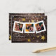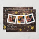 This postcard is ideal for any family looking to send some Christmas love to friends and family. This design features a rustic, dark wood background with 3 photos pegged on a line with stars cut out in gold foil and a snowflake overlay. In the bottom left-hand corner, it reads "Merry Christmas with love from" and your family name and the year in a blend of lettering done by hand. Customise the design by clicking the "personalise" button and then type in your details and upload your own images!