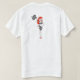 Peggy Pitstop with chequered flag on the back of t-shirt