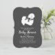 Include the big brother or sister fur baby in the celebration with this adorable Pekingese dog baby shower design! Perfect for a puppy lover with a baby on the way. The Pekingese is next to an adorable vintage carriage. The chalkboard grey background makes it perfect for a gender neutral or co-ed shower!