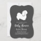 Include the big brother or sister fur baby in the celebration with this adorable Pekingese dog baby shower design! Perfect for a puppy lover with a baby on the way. The Pekingese is next to an adorable vintage carriage. The chalkboard grey background makes it perfect for a gender neutral or co-ed shower!