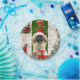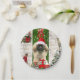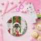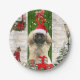 Pekingese Dog Christmas sitting outside decorated home with Christmas wreath, Christmas tree is a perfect Christmas gift idea for dog lovers.