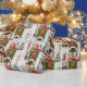 Pekingese Dog Christmas sitting outside decorated home with Christmas wreath, Christmas tree is a perfect Christmas gift idea for dog lovers.