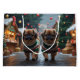 This festive design captures the joyful spirit of the holiday season, featuring an adorable dogs.Nestled in a winter wonderland, complete with a decorated Christmas tree, and beautifully wrapped presents. Snowflakes gently fall, adding a magical touch to the scene, while the vibrant colours of the holiday decorations create a warm and cheerful atmosphere.