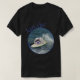 I give wanted to give this a 4 instead of a 5 because these Basic DARK T0shirts run unexpectedly SLIM or Narrow. Which is great if you do not have a potbelly, but I have a paunch. It isn't the shirt's fault that I've got a beer belly. The design and shirt itself is a quality cotton shirt. The color is more of a deep purple, but still a very pretty color. The Basic DARK T-shirts run a bit SLIMMER than the Basic Ts. The neck is a fraction narrower (or seems to be narrower) also. I'm a paunchy middle-aged woman and my neck is 12 inches (31cm) thick and the neckline fell about the same as in the photo of the man, and I had the desire to tug it a bit. So if you're a thick necked man or like loose shirts, be aware these are slimmer shirts. Once I get rid of my lockdown paunch it'll look great. The shirt washed well in cold water with no apparent bleeding. We don't have a dryer, so it hung dry. Did not shrink. Love the colors and the design. The design looks smaller on my shirt than it does on the model on-line. But still, it looks good on the shirt. The printing looks as it does on the model, just the size seems fractionally smaller. Washed garment in cold water, hung dry and design appeared unaffected.