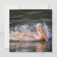 A majestic pelican gracefully floats on the water, its sleek feathers glistening with droplets as it vigourously shakes off the remnants of a recent dive. The contrast against the deep black background accentuates the elegance of the water droplets caught in mid-air, creating a captivating scene of nature in motion.