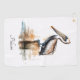 watercolor painting of a pelican standing on a pole in the water