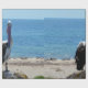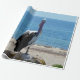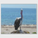 Pictured with a annoyed look is a pelican at the beach on a rock