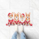 Adorable low-riders ready for the holidays! These charming Pembroke Welsh Corgis look festive and cute in their Santa outfits. A perfect design for Corgi lovers and small dog enthusiasts.