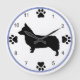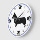 A dog lover clock featuring the silhouette of an Pembroke Welsh Corgi, with paw prints marking the quarters.