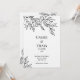 A minimalist wedding invitation featuring a hand drawn line art illustration of a rose flower with small leaves, in black ink against a pure white background on a luxurious heavyweight soft textured imported invitation paper. Other, more economical printing papers are available from matte to glossy finish.
