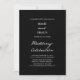 Introducing our modern and stylish minimalist wedding invitation. Featuring white handwritten pen script and classic lettering on a black background, it's a perfect choice for formal weddings. You can also change the colours of the text and background to match your theme. Make your wedding invitation stand out with this elegant and customisable design. Order yours today!