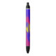 Pen covered in a colourful smudge of pink, yellow, and purple.