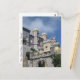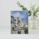 This postcard displays a photograph of the Pena National Palace in the municipality of Sintra, Portugal on a bright, sunny day. The palace is a national monument, a UNESCO World Heritage Site and one of the Seven Wonders of Portugal. When you see the colourful red, purple and yellow towers and the intricate stonework the palace boasts, you will understand why.