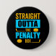 Penalty Box Hockey button features silhouette pucks and hockey sticks with text that reads Straight Outta the Penalty Box!
