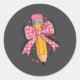 Pencil Coquette Bow Test Day Teacher Motivational Classic Round Sticker