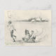 Pencil Sketch Antique Winter Farm Scene Postcard