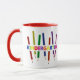 This is a mug for a kindergarten teacher with multi-coloured pencils and the word Kindergarten across the pencils. This would make a great back-to-school, teacher appreciation or end of year gift.