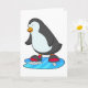 Penguin at Ice skating with Ice skates Card