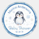 Add a frosty and adorable touch to your celebration with this watercolor penguin baby shower sticker! Perfect for sealing envelopes, decorating party favours, or topping cupcakes, this round sticker features a cute penguin and delicate snowflakes. Personalise with your event details for a charming arctic-inspired finish.