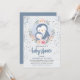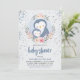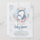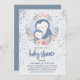 Baby Shower Invitation features Penguin mom and baby on a blue background and faux glitter sprinkles. Personalize with party details.