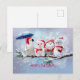 Penguin, cat, owl and snowman under the snow announcement postcard