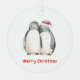 Indulge in the enchanting holiday spirit with our Christmas ornament, showcasing a delicate and beautiful watercolor illustration portraying an endearing pair of penguins sending warm Christmas wishes. Infuse your holiday season with joy and cuteness by embracing this adorable penguin family, bringing an endearing touch to your hearts and homes.