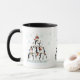 This Christmas Holiday mug features a fun, comical illustration of penguins dressed up for Christmas and standing on each others shoulders to make a Christmas tree shape complete with a star on top. Original artwork. Copyright Leah Wiedemer.