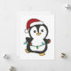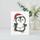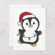 The Penguin at Christmas with fairy lights. Funny animals with gifts and snow for the holidays. A sweet Christmas greeting. Penguines are cute animals and perfect for Christmas.