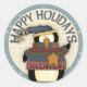 A cute penguin wearing a hat and a scarf with caption Happy Holidays on buttons, magnets, keychains, stickers, neck ties and US postage stamps. Makes a great party favour, stocking stuffer or envelope seal for Christmas cards.