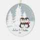 Our unique dated custom penguin love Christmas Ornament features a cute penguin couple set on a christmas tree snow background! Personalise with your information and date and you're all set to go! Wonderful dated keepsake gift for a couples first christmas and a great addition to you christmas ornament collection.